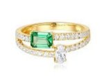 Lady's Yellow 14 Karat Fashion Ring With One = 0.62Ct Emerald shape Garnet And 34 = 0.39Tw Round Diamonds